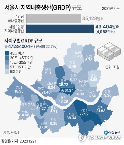 서울시, 2021년 시민 1인당 GRDP 4만 달러 첫 돌파...금융·정보통신 성장