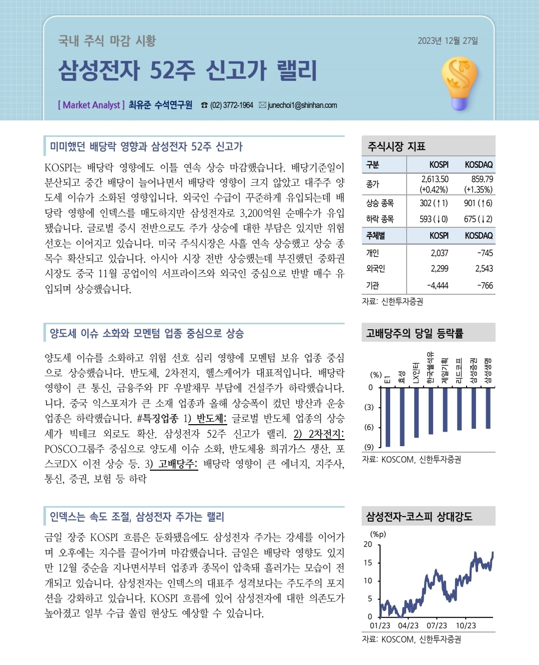 미미했던 배당락 영향과 삼성전자 52주 신고가