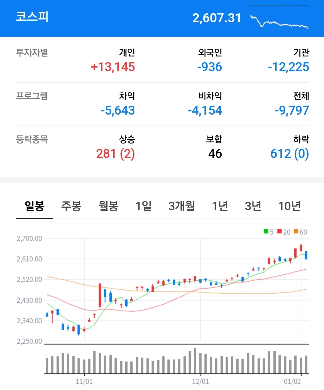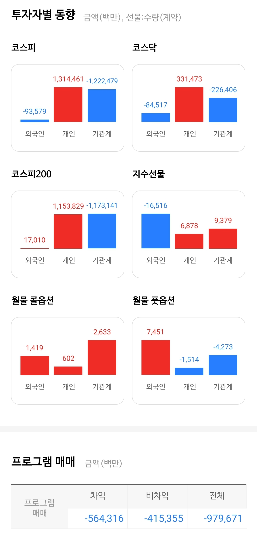 - 대규모 선물 순매도에도 현물 시장 수급 변화는 미미했습니다.