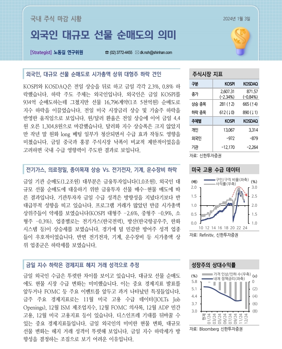 외국인 대규모 선물 순매도의 의미(신한증권)