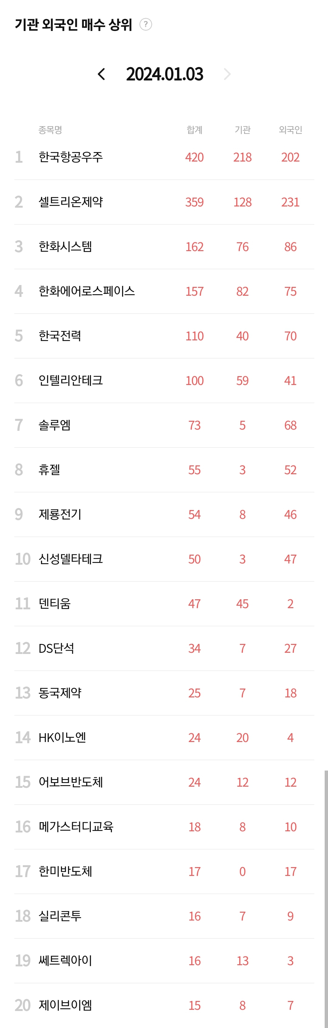 2024년 1월 3일 상승률 TOP30