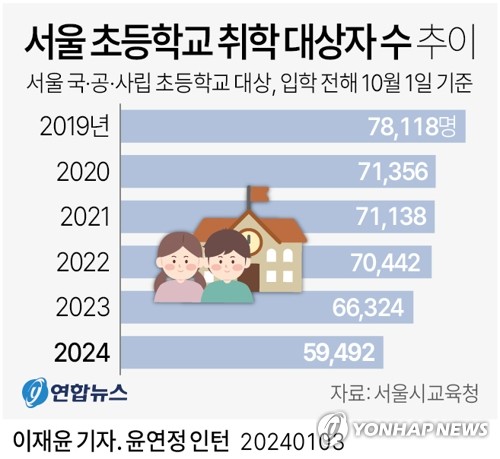 저출산 여파로 매년 감소하던 서울 초등학교 취학 대상자가 올해 처음 6만 명 아래로 떨어졌다. 서울시교육청은 2024학년도 초등...