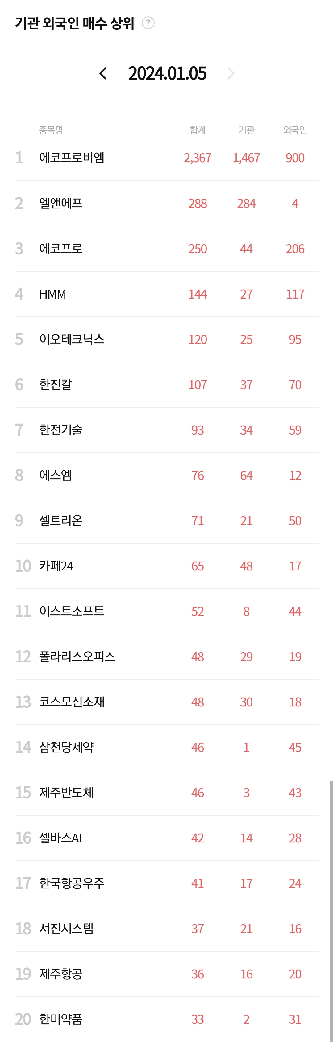 - 에코프로비엠과 에코프로가 오늘 외국인 순매수 상위 1, 2위를 차지했고, 외국인 대표 혐오종목인 POSCO홀딩스(+2.2%), 포스코퓨처엠(+3.8%)도 각각 순매수 3, 5위에 등극