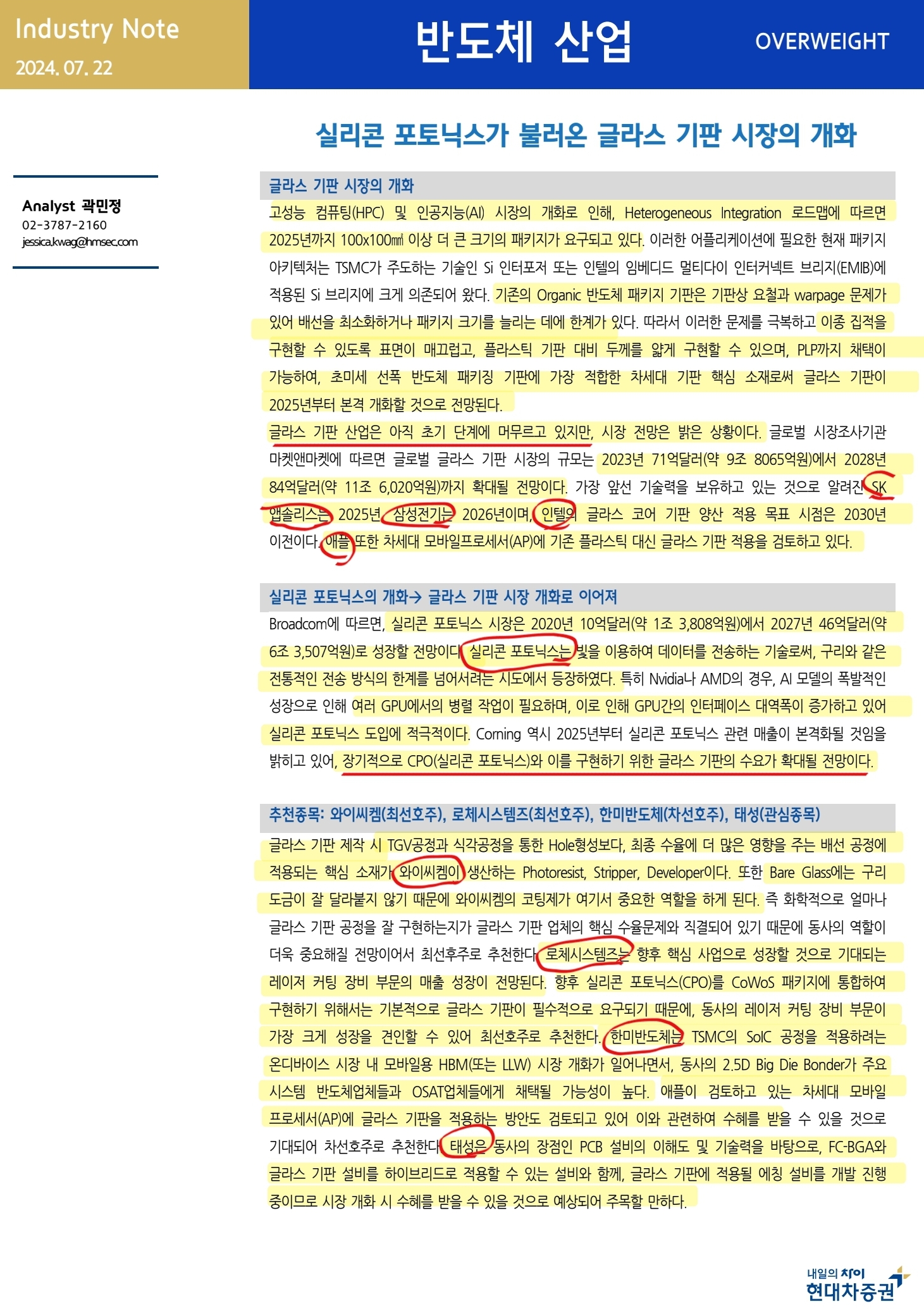 #반도체 실리콘 포토닉스가 불러온 글라스 기판 시장의 개화(현대차증권)
