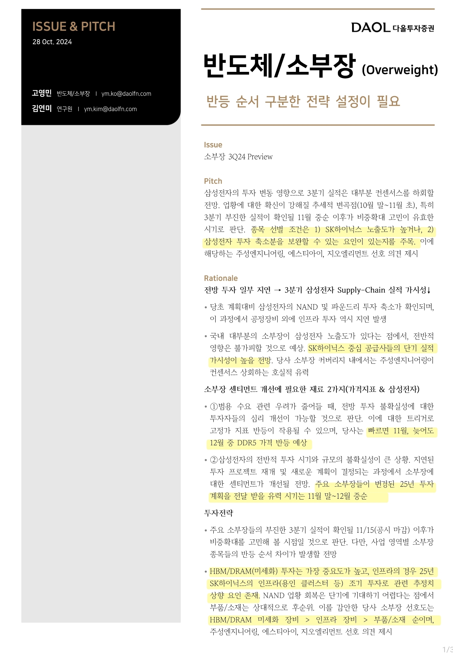241028 다올투자증권 P35 반도체 및 관련장비-반등 순서 구분한 전략 설정이 필요(고영민 김연미).pdf