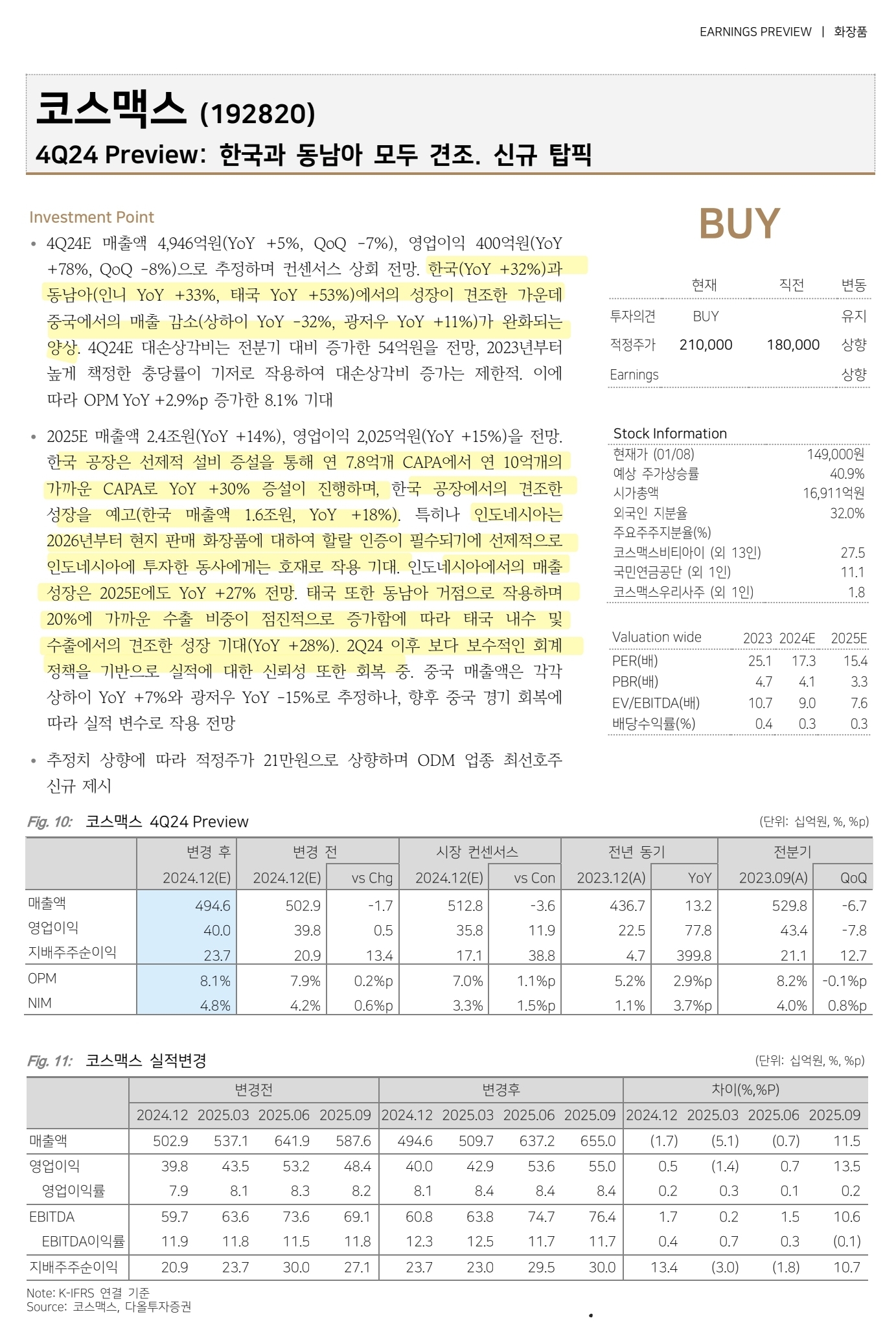 | 기업 리포트 : 한국콜마(161890) (1) | 2025.01.16 |