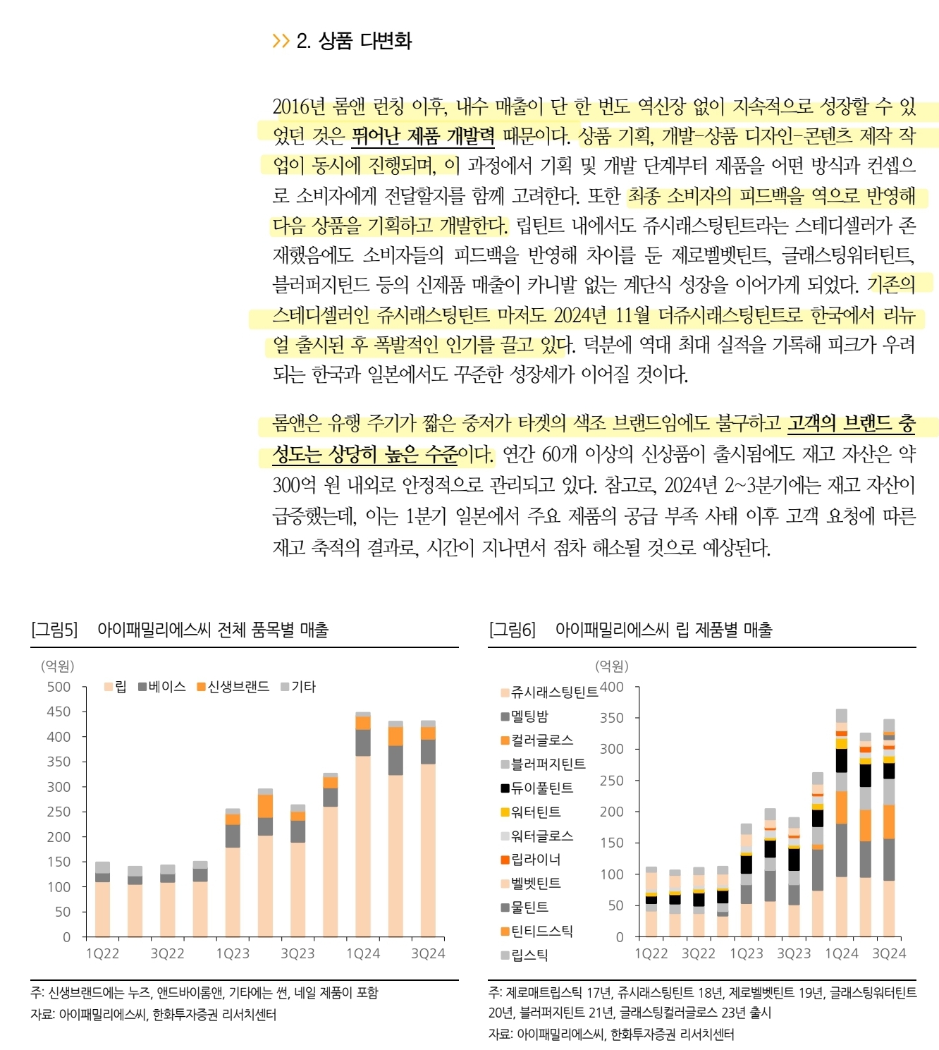 - 리뉴얼 및 신제품이 1개월~6개월 안에 일본에 출시될 정도로 마케팅과 영업망이 유기적으로 연결되어 있어, 일본 역시도 안정적인 성장세 이어질 전망