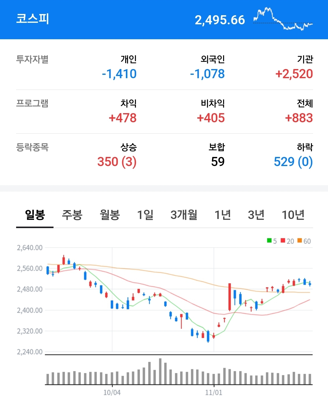 1. 2,500선에서 손 바뀜 잦아지며 약보합