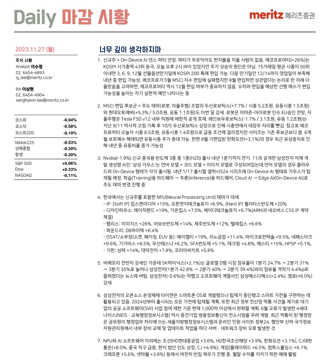너무 깊이 생각하지마(메리츠증권)