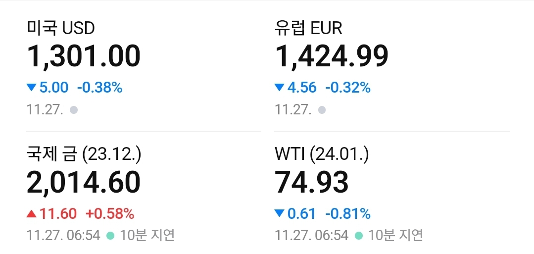 - 블랙프라이데이 영향으로 대외 변수가 많지 않았고 이번 주 예정된 제조업지표, PCE물가, 금통위 등 이벤트 대기 심리가 작용했습니다.