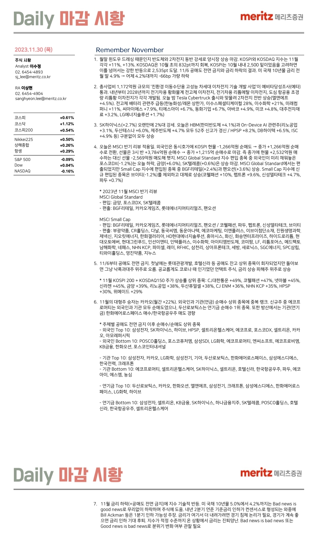 | 2023년 11월 30(목) 목표가 상향 리포트 요약 (1) | 2023.11.30 |