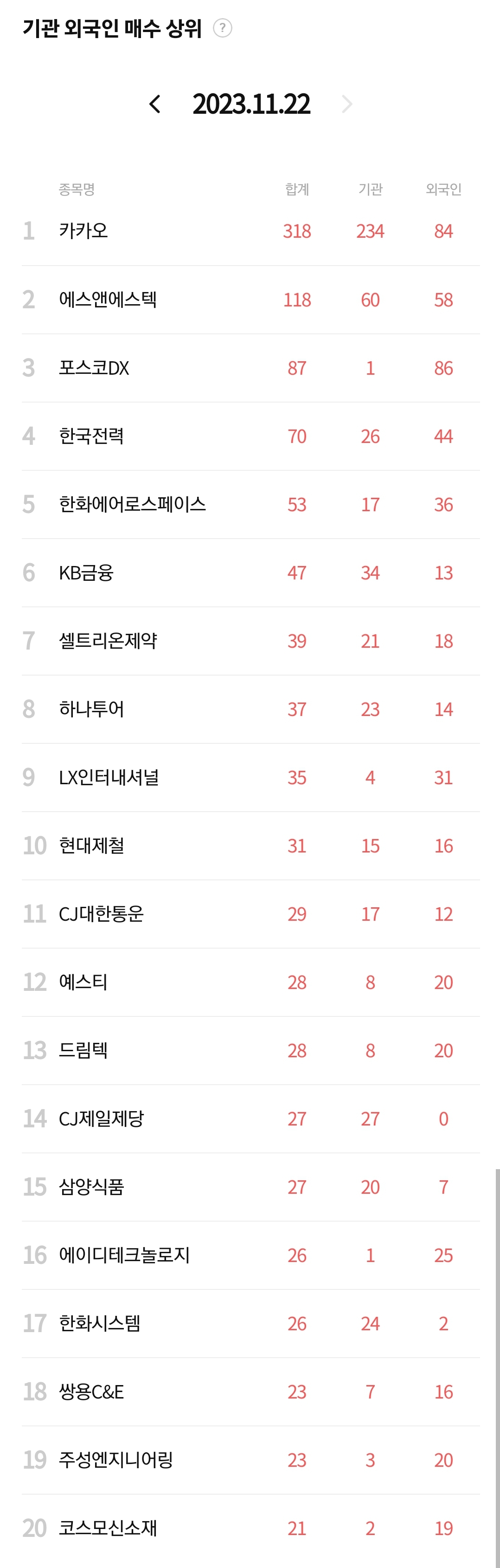 - 3) 조선: 내년도 실적 기대감과 주가 메리트 부각되며 기관 중심의 매수세 유입.